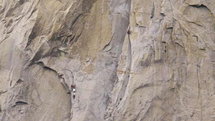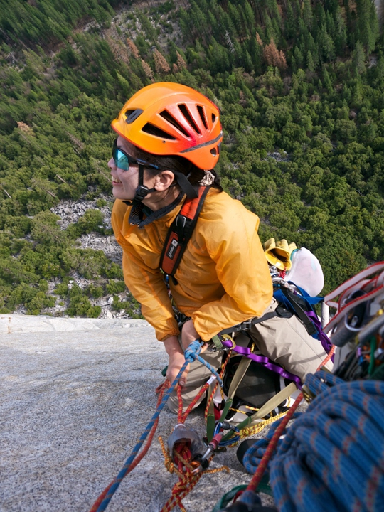 大牆攀登要帶的東西極多,光是裝備就整理了一下午。相對於許多人先利用半天的時間攀爬四個繩距、架設固定繩、拖包到Sickle Ledge,再回到地面休息;John和我決定隔天早上直接就上,一離地面就不再回頭。兩種作法在總時間和體力的保持上也許不分軒輊,但我喜歡後者的乾脆。