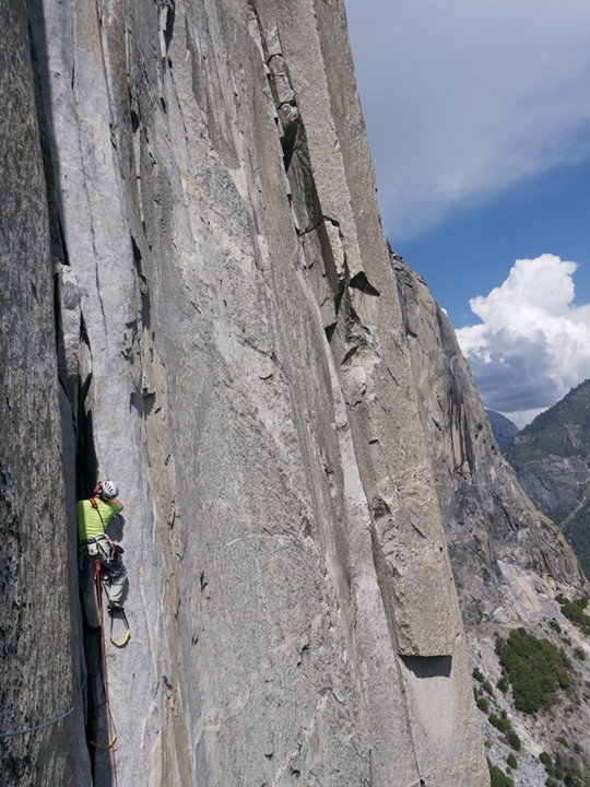 John沐浴在加州的陽光下,穩定的朝向第二天的棲息地 El Cap Tower。